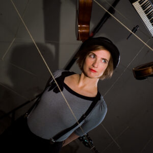 Judith Rummel - Kontrabass, Gesang, Fußglocken, besitzt eine Taschentrompete.